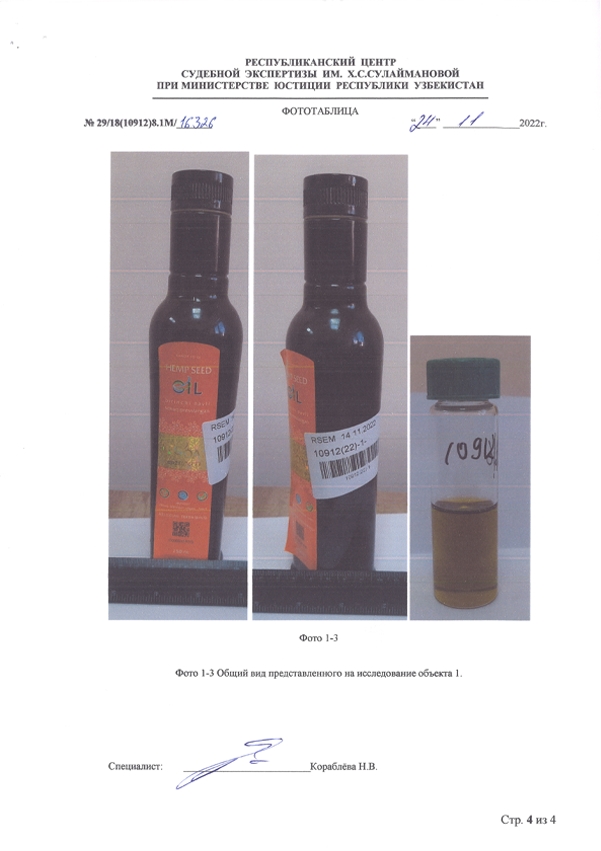 LEODAR® hemp oil contains no traces of the drug tetrahydrocannabinol (THC) in its composition - an expert opinion of the Republican Center for Forensic Science named after Kh. S. Sulaimanova under the Ministry of Justice of the Republic of Uzbekistan